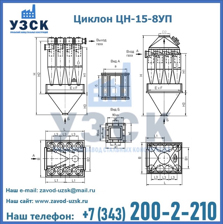 Завод «УЗСК» в Аягозе предлагает большой выбор циклонов ЦН-15-500×8УП и прочих устройств, полностью укомплектованных и готовых к эксплуатации. Мы гарантируем соответствие оборудования всем требованиям ГОСТ и ТУ, износостойкость и высокую производительность предлагаемого оборудования. Уральский Завод Стальных Конструкций изготавливает и продает надежное, эффективное и производительное оборудование, имеющее длительную гарантию и большой эксплуатационный ресурс. Если требуется изготовить циклон нестандартных размеров, то такой вариант выполнения заказа тоже предусмотрен, так как предприятие имеет собственные производственные площади и надежных поставщиков. На все поставляемое или производимое оборудование имеются чертежи и прочая техническая документация. Заказать и купить циклоны или прочее оборудование высокого качества и по доступной цене можно через наш сайт или по указанному в разделе «Контакты» телефону.