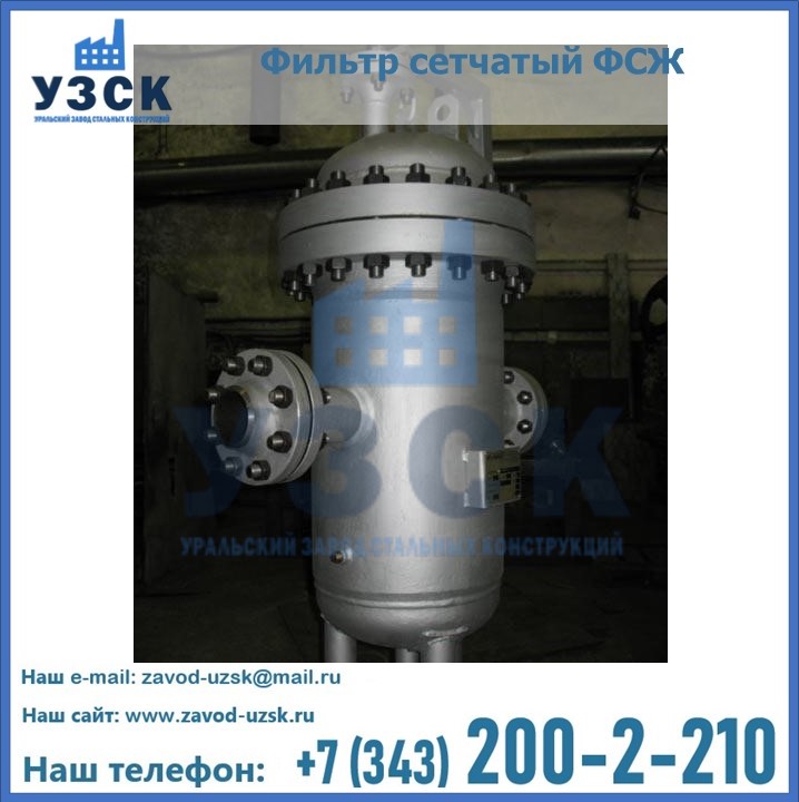 Очистку перекачиваемых жидкостей на предприятиях нефтяной, пищевой, горнорудной, фармацевтической и других отраслей промышленности эффективно выполнять с помощью жидкостного сетчатого фильтра — емкостное оборудование цилиндрической формы со съемной крышкой и элементом фильтрации внутри. Оснащенные им всасывающие линии насосных станций и установок защищены от проникновения твердых частиц в функциональные узлы гидравлической системы. Оборудование служит для перекачивания токсичных, агрессивных и иных эмульсий, суспензий, жидкостей. Купить фильтр сетчатый жидкостный ФСЖ в Аягозе с гарантией производителя предлагает «Уральский завод стальных конструкций». Мы выполняем проектирование и изготовление ФСЖ по индивидуальным требованиям (климатическая зона, транспортируемая жидкость).