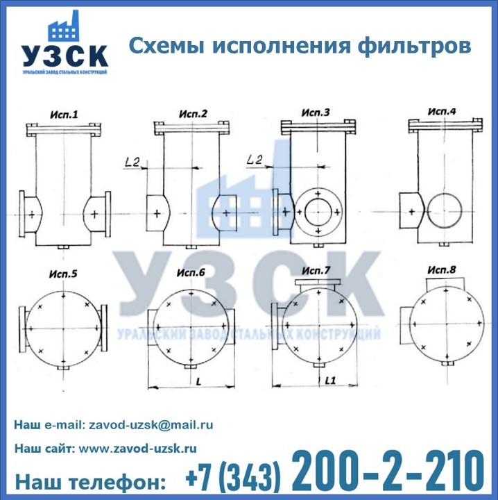 Из-за этого и разнится обозначение на ФГ и ФГУ, соответственно. Фильтры также могут быть вертикальными и горизонтальными, также может быть предусмотрена врезка сбросного трубопровода. Какой бы тип фильтра ни понадобился, завод «УЗСК» в Аягозе занимается производством любого из них.