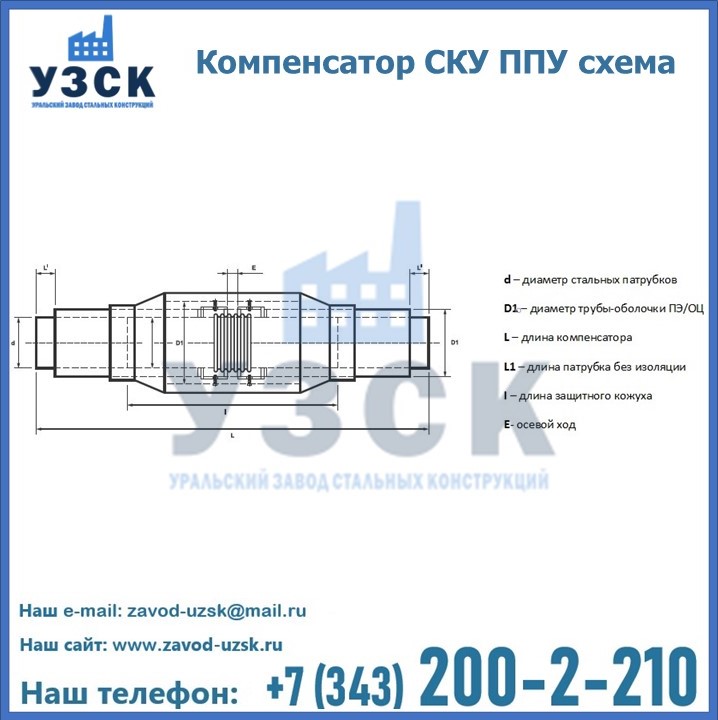 Уральский Завод Стальных Конструкций в Аягозе предлагает готовые изделия, а также вы можете приобрести компенсатор СКУ ППУ под заказ. Наш завод располагает всем необходимым оборудованием для производства нестандартных позиций компенсатора СКУ в ППУ изоляции. Завод «УЗСК» предлагает большой выбор качественных и надежных компенсаторов СКУ ППУ, полностью укомплектованных и готовых к эксплуатации. Мы гарантируем соответствие нашей продукции всем требованиям ГОСТ и ТУ, износостойкость и высокую производительность. Наше предприятие поставляет и производит оборудование, имеющее длительную гарантию и большой эксплуатационный ресурс. Если вы хотите заказать сильфонные компенсационные устройства СКУ ППУ или другое оборудование с доставкой, наши специалисты помогут рассчитать стоимость транспортных расходов и организуют доставку товара. Вы можете оформить заказ на продукцию на нашем сайте, для этого достаточно заполнить форму обратной связи.