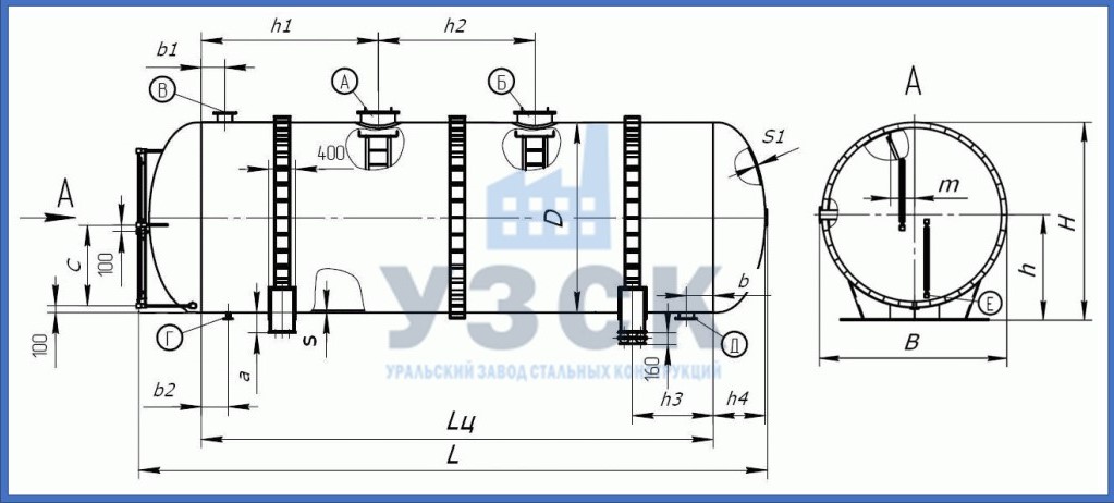 Геометрические размеры горизонтальных баков-аккумуляторов