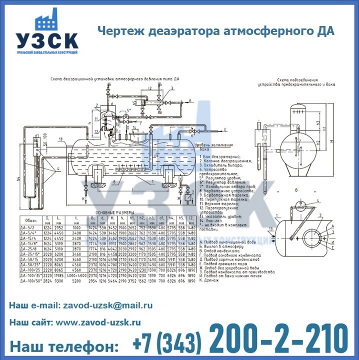 Приобрести качественное оборудование, в том числе, деаэраторы ДА, можно в компании УЗСК в Аягозе. Мы предлагаем долговечную и надежную продукцию по приемлемой цене. Заказать и купить деаэраторы или другие изделия высокого качества можно через сайт Уральского Завода Стальных Конструкций, или позвонив по указанному в разделе «Контакты» телефону.
